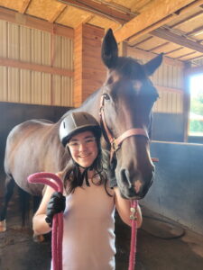 I am a 7th grader at Wesleyan Christian Academy.  I first began participating in HorsePower last February, and I immediately realized how much I loved horses.  I have always loved animals, but I didn’t realize how safe and confident I could feel on top of such a large animal.  I ride Romona.  She is such a good girl and takes such good care of me.  One of my favorite parts of the lesson is getting her tacked up.  I feel very proud of myself at the end of each lesson.  One of my favorite experiences at HorsePower was attending camp this summer.  I met some great friends that I immediately connected with.  It’s amazing to find friends in such a cool place.